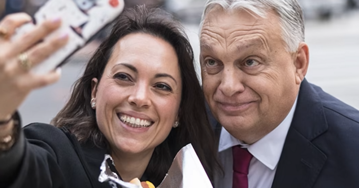 Miután Orbán kifizette a 7 dollárt a kettő hot dogért, lányával egy szelfin örökítették meg a tipikus amerikai gasztrokalandot.