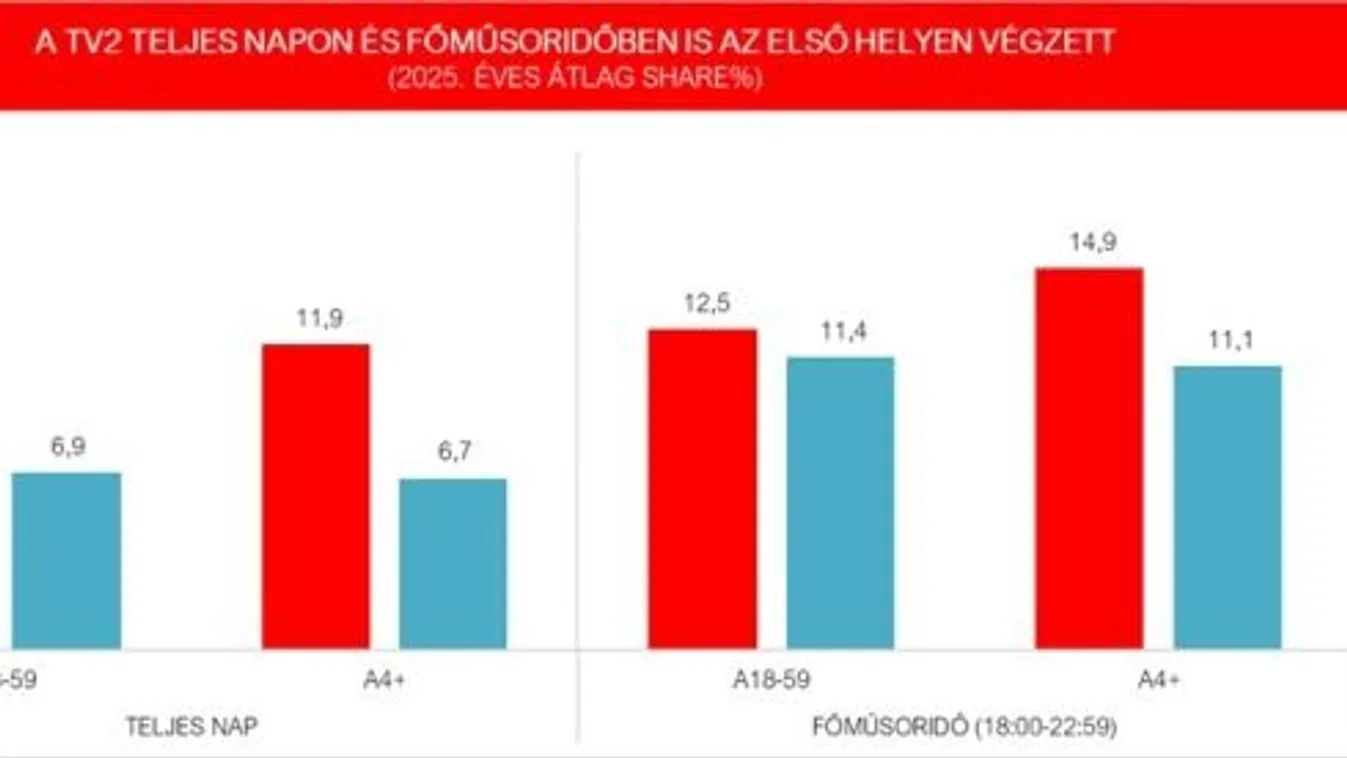 Az előző évekhez hasonlóan 2025-ben is a TV2 lett a legnézettebb csatorna teljes napon és főműsoridőben egyaránt, mindkét kiemelt korcsoportban. A kiemelkedő tévés főszezonnak köszönhetően pedig az idei már a negyedik olyan ősz volt, mikor a TV2 lett a nézők első számú választása főműsoridőben is.