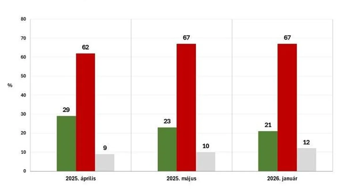 A magyarok 67 százaléka van rossz véleménnyel keleti szomszédunk lehetséges tagságáról az Európai Unióban és mindössze egy ötöd (21 százalék) támogatná azt. A tavalyi évvel összehasonlításban lényeges változás, hogy tovább nyílt az olló a kérdésben, hiszen 2025 áprilisához képest nőtt az elutasítók (62 százalékról 67-re) és egyben jelentősen csökkent a tagságot helyeslők aránya (29 százalékról 21-re). Még ennél is többen ellenzik Ukrajna katonai támogatását, hiszen 21 százaléknyi pozitív vélemény mellett 69 százaléknyian vélekednek negatívan róla.
