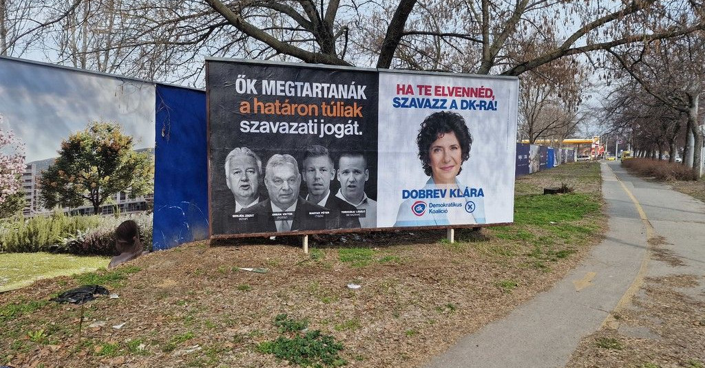 A DK plakátjain Magyart és Orbánt szerepelteti, mert „tartanák a határon túliak szavazati jogát”.
